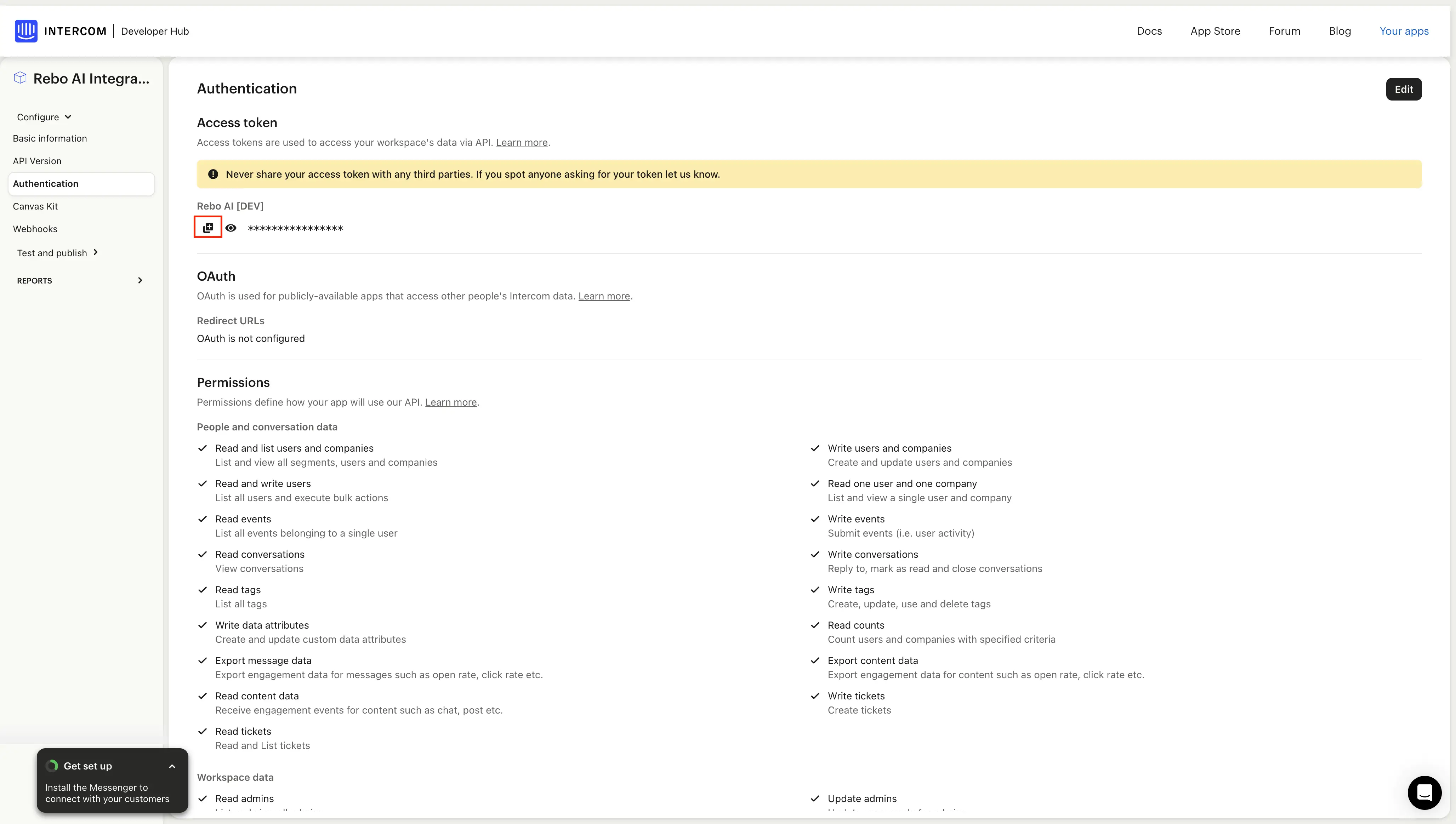 Follow these simple steps to connect your Intercom account to Rebo AI.